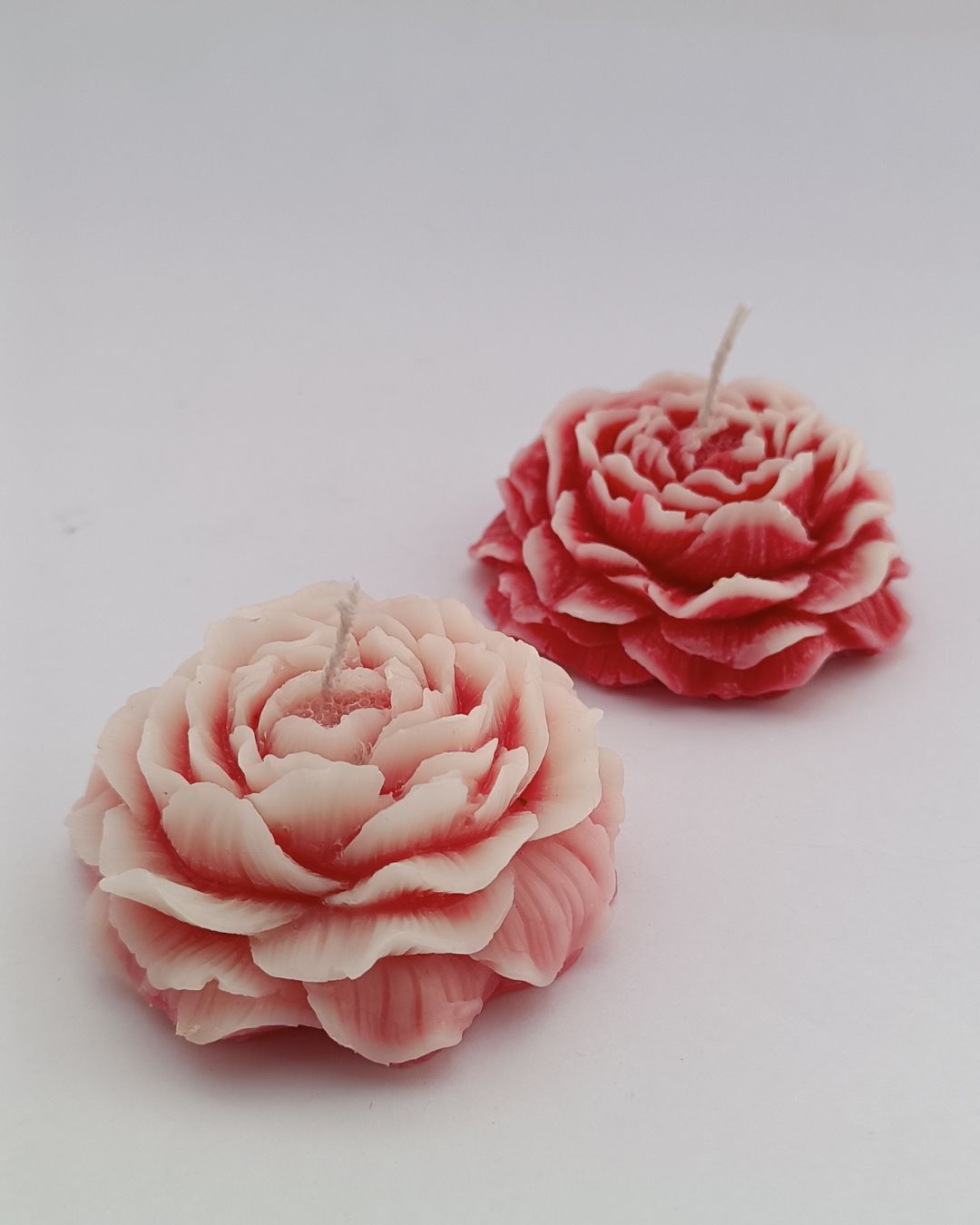 Bring the timeless elegance of a blooming garden into your home with the Festive Peony Flower Candles by Maeve Essentials. This exquisite set of two handcrafted candles is meticulously shaped to resemble a lush, layered peony in full bloom. The stunning two-tone design, with shades of light blush and deep pink, adds a delicate and sophisticated touch to any décor.