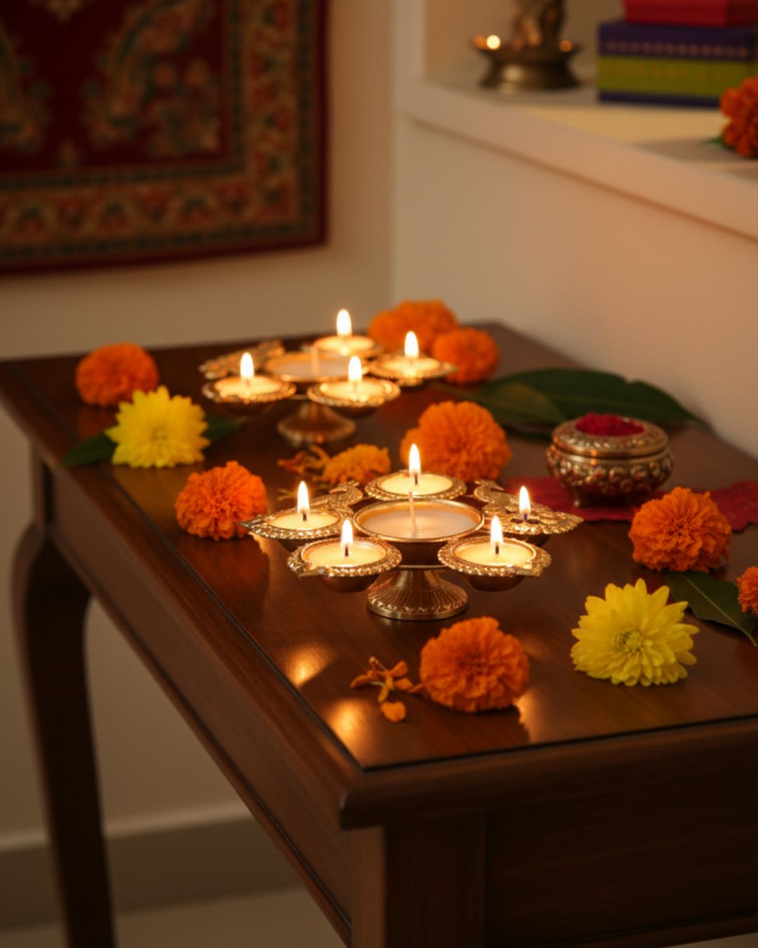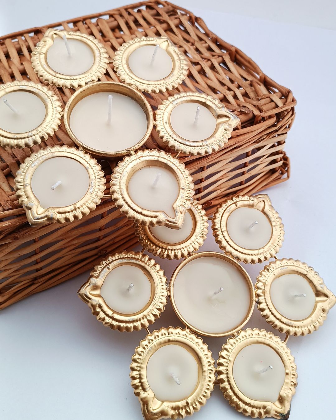 ✔ Multi-Diya Cluster – Single piece with multiple tealight holders